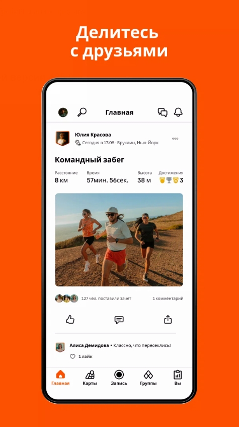 Запись бега, велопрогулок, походов и 30+ видов спорта