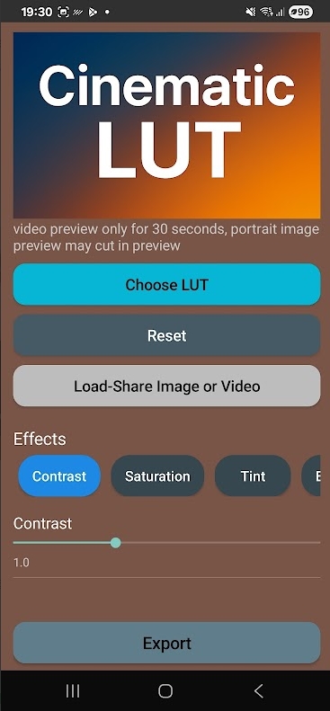 Встроенные кинематографические LUT для предпросмотра в реальном времени