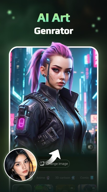 Превращайте свои селфи в уникальные произведения искусства, аниме-аватары и креативные портреты одним нажатием! Genart — это творческий генератор на базе искусственного интеллекта, который открывает безграничные возможности для самовыражения.