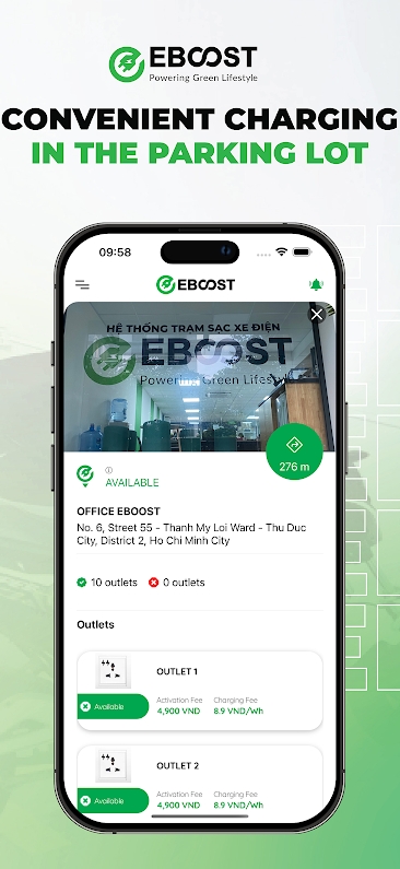 EBOOST — это умное и открытое решение для зарядки электротранспорта: электровелосипедов, электроскутеров и электромобилей любых марок. Приложение предоставляет полный контроль над процессом зарядки и доступ к растущей сети станций по всему Вьетнаму.