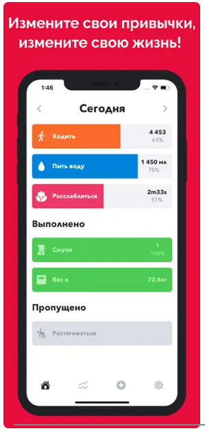 Приложение имеет более 50 заранее определенных положительных и здоровых привычек для начала работы. Напоминания незамедлительно сообщают вам, что...