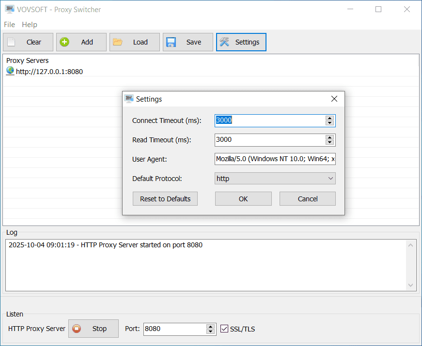 Vovsoft Proxy Switcher — это программа для автоматической ротации прокси, которая работает как локальный сервер. Её основная задача — перенаправлять интернет-трафик подключённых приложений через целый список прокси, избавляя от необходимости настраивать каждую программу отдельно.