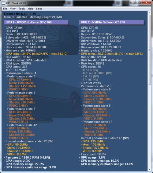 GPU Shark - простая и бесплатная утилита для мониторинга за графическим процессором. Поддерживает видеокарты NVIDIA GeForce и AMD/ATI Radeon.Особенности программы «GPU-Shark»: 1. Отображение всей информации в одном окне 2. Отображение названия, температуры, частоты, версии шейдеров и т.д. 3. Доступ к дополнительной информации о видеокарте 4. Поддержка нескольких видеокарт