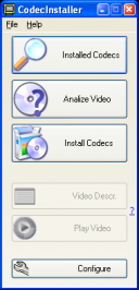 CodecInstaller - программа анализирует операционную систему и показывает установленные в ней аудио и видео кодеки. Кроме этого, может проводить анализ видеофайла, после чего предлагает необходимый для его просмотра кодек, причем установить недостающий кодек можно прямо из окна CodecInstaller. Для работы программы требуется Microsoft .NET Framework 2.0 Операционная система: Windows 98/ME/2000/XP/Vista/Server 2003