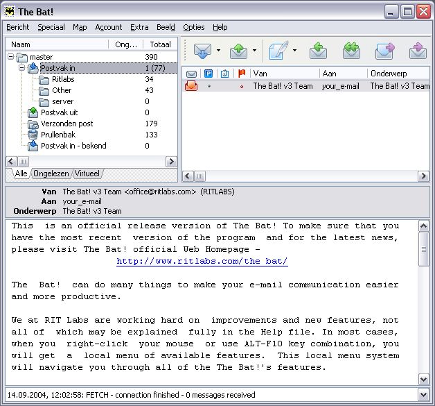 "The Bat! – защищенная от вирусов программа электронной почты для Windows 95/98/W2K/XP/Vista, с русским интерфейсом и множеством уникальных функций, облегчающих повседневную работу.Почтовый клиент «The Bat!» разрабатывается компанией RitLabs начиная с 1996 года. С тех пор программа завоевала огромную популярность у пользователей, благодаря дружественному интерфейсу и множеству совершенно уникальных функций, делающих работу с почтой легкой и удобной.Основное...