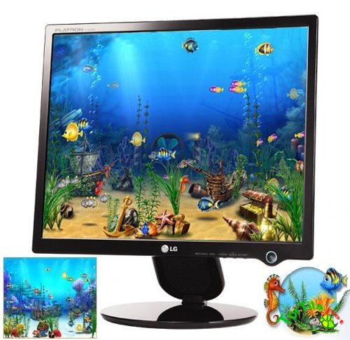 Превосходная анимация, проработана каждая деталь оформления - экзотические рыбки, растительность, свет и тени, пузырьки. Всех обитателей аквариума можно выбрать по своему усмотрению.