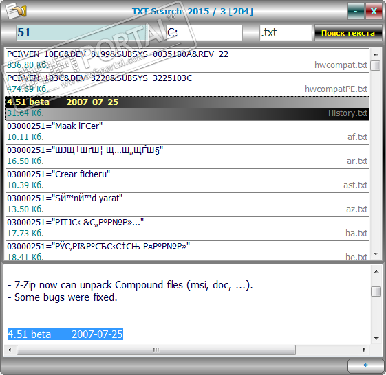 TXT Search - небольшая портативная программа для быстрого и удобного поиска нужного текста в файлах. Бывает, что вы ищите какую-то важную информацию, но просто не помните в каком файле ее сохранили. Чтобы не заниматься ручным поиском, который достаточно утомителен и занимает много времени, как раз и стоит воспользоваться приложением TXT Search.